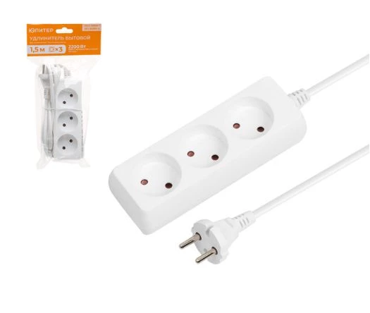 Удлинитель 1,5 м 3 розетки 2,2 кВт юпитер (JP8101-22) оснащен латунной контактной группой для устойчивого электрического контакта между вилкой и розеткой.