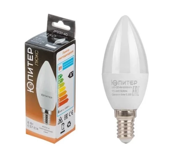 Тип колбы: C37 (форма «свеча», диаметр 37 мм)