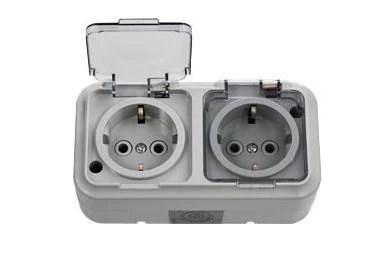 Розетка двойная наружная брызгозащищенная BYLECTRICA Пралеска Аква серый.