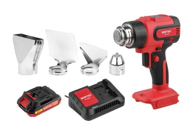 Фен строительный (термовоздуходувка) аккумуляторный WORTEX CHG 5518 ALL1 XLT SET (1333610) предназначен для снятия краски и лака, сгибания пластика, сушки клея и герметика, разморозка замков, размягчение мастики, отклеивания обоев.