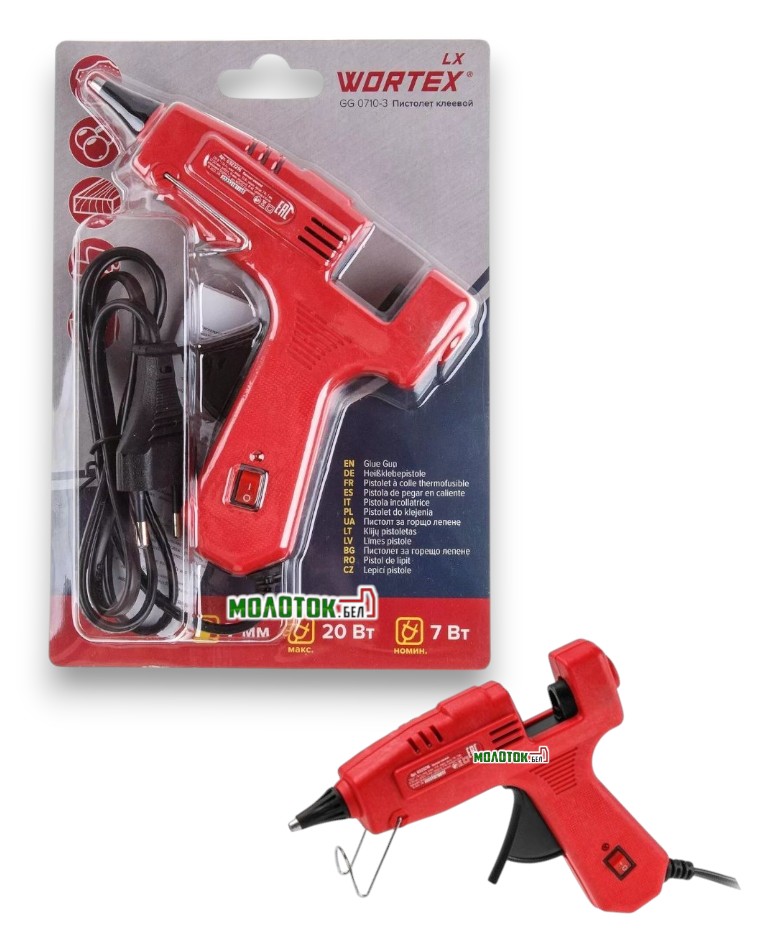 Пистолет клеевой WORTEX LX GG 0710-3 (0323216) подходит для фиксации различного рода материалов: пластика, картона, стекла, текстиля и др.