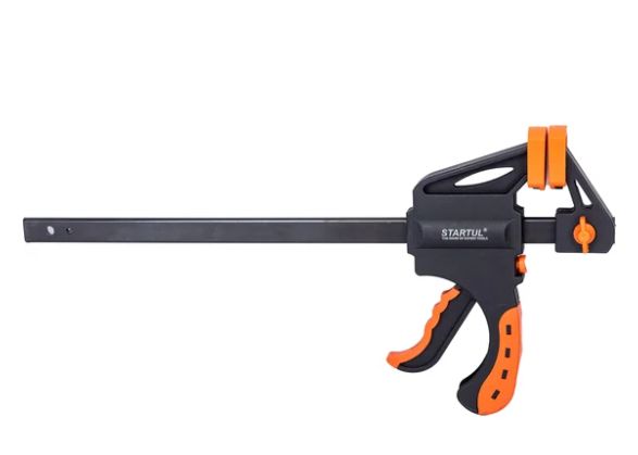 Струбцина STARTUL пистолетная ST9024-25 сжимает детали между собой, а также обеспечивает их монтаж на поверхности рабочего стола.