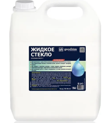 Жидкое Стекло (натриевое) Goodhim Prof F представляет собой водный раствор силикатов натрия, в виде студнеобразной жидкости.