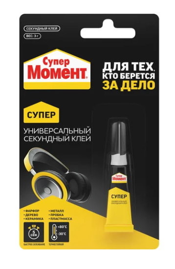 Супер клей Момент 874565 используют для быстрого склеивания таких материалов, как фарфор, керамика, дерево, кожа, резина, металл, пробка, картон и большинство пластиков.