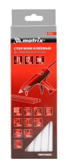 Белые клеевые стержни Sparta 930733, 11 х 200 мм, используются в качестве расходных материалов для клеевых пистолетов калибра 11 мм.