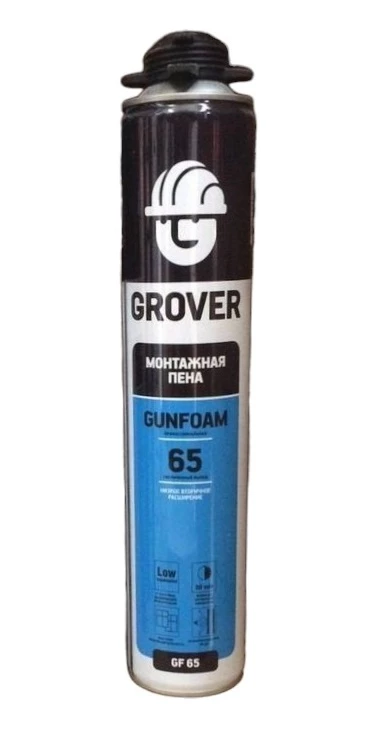 Пена монтажная GROVER GF65 840 мл - полиуретановая пена, затвердевает под воздействием влажности воздуха.