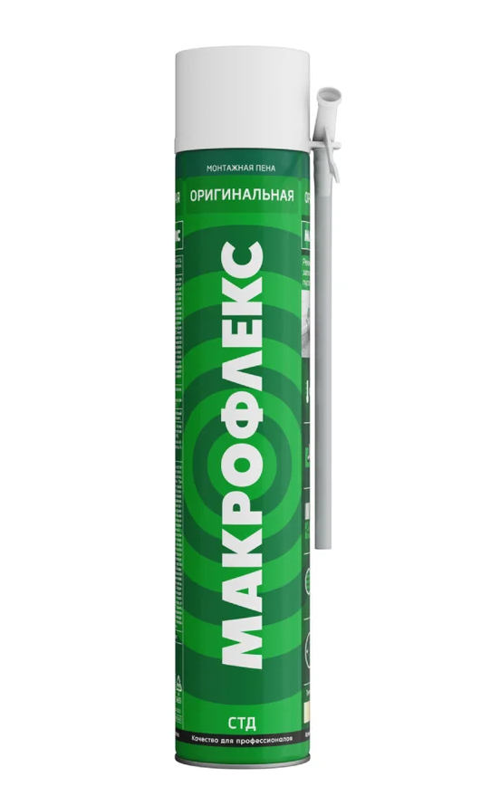 Однокомпонентная полиуретановая монтажная пена Makroflex ORIGINAL СТД — готовая к применению всесезонная пена, затвердевающая под воздействием влажности воздуха.