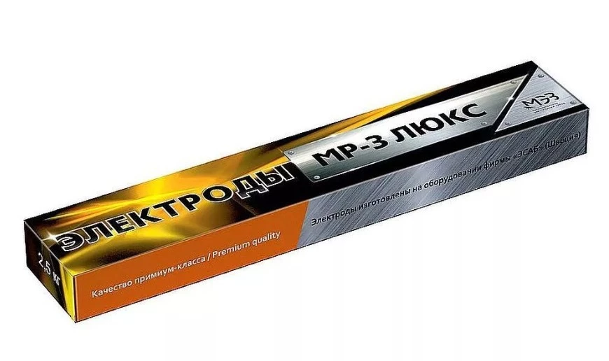 Электрод для углеродистой стали 2,5 мм МЭЗ Люкс МР-3  предназначен для ручной дуговой сварки ответственных конструкций из углеродистых и низколегированных сталей,