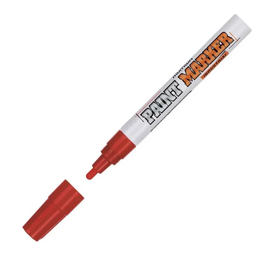 Маркер перманентный на основе жидкой краски MUNHWA Industrial красный предназначен для использования на всех типах производственных поверхностях: металл, дерево, резина, бетон, стекло, кожа и др.
