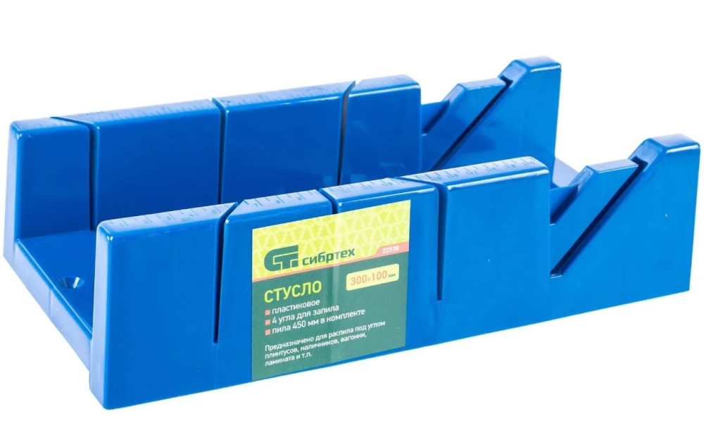 Пластиковое стусло Сибртех 300 х 100 мм обеспечивает 4 угла для запила материалов: вертикального под углами 45/90/135 градусов и горизонтального по углом 45 градусов.
