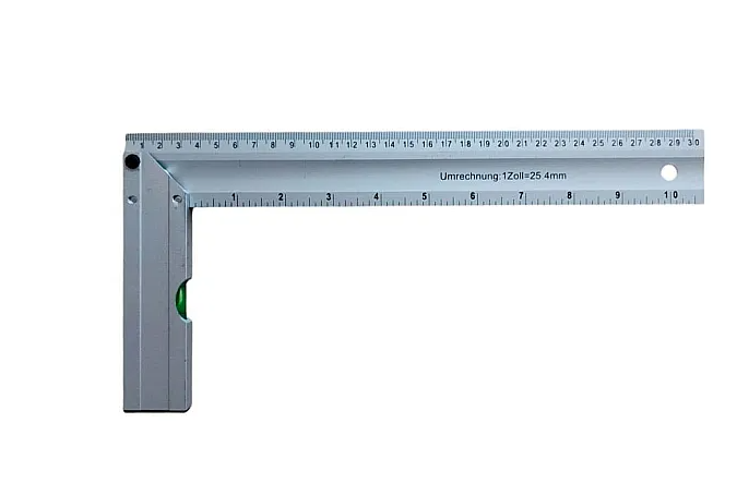 Угольник Hiborg изготовлен из алюминия, анодированная поверхность, 1 акриловый глазок, двусторонняя разметка в см, отверстие для подвеса.