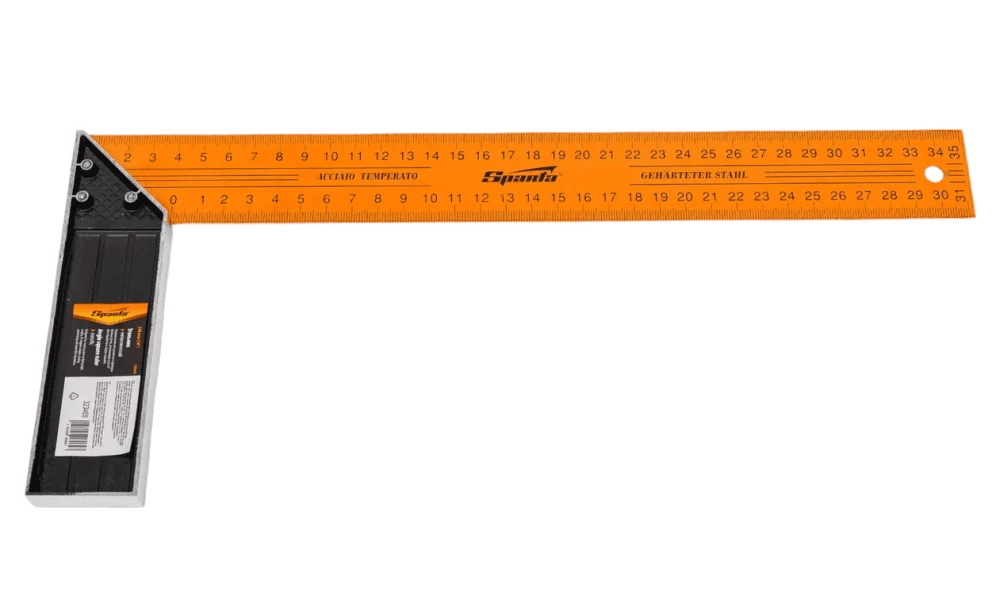Угольник столярный металлический 350 мм — профессиональный измерительно-разметочный инструмент для контроля прямых углов (90°), разметки линий и проверки перпендикулярности деталей при столярных, слесарных и строительных работах.