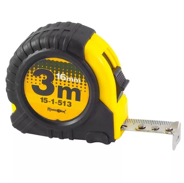 Рулетка РемоКолор Т2 3 м имеет обрезиненный пластиковый корпус, холоднокатаная лента с трехслойным покрытием (краска, шкала, лак), возвратная пружина усиленного типа.