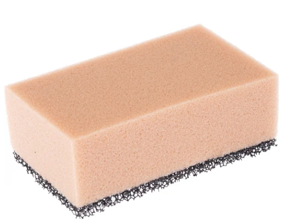 Она имеет двухслойную структуру: жесткий слой из ретикулированного поролона используется для первичной очистки, а мягкий - для финишной обработки поверхности и удаления воды.