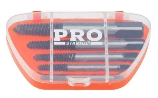 Набор экстракторов PRO STARTUL 5 предметов (PRO-6090) изготовлен из хромомолибденовой стали и предназначен для извлечения обломанных шпилек и болтов с правой резьбой.