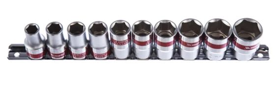 Набор торцевых головок Matrix 13557 с посадочным гнездом 1/2 дюйма и шестигранным профилем, CrV, 10 шт., 10-22 мм, предназначен для работы с резьбовыми соединениями.