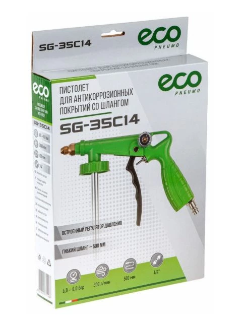 Пневмопистолет для антикоррозионных покрытий ECO SG-35C14 (SG-35C14) предназначен для выполнения работ по нанесению антикоррозионных покрытий путем их распыления сжатым воздухом.
