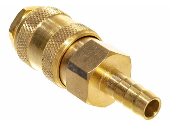 Соединение быстросъемное МАМА х елочка 12 мм ECO имеет автоматический клапан, перекрывающий канал и предназначено для установки на выходном конце пневматических шлангов с внутренним диаметром 8 мм для создания автоматических прерывателей подачи воздуха.