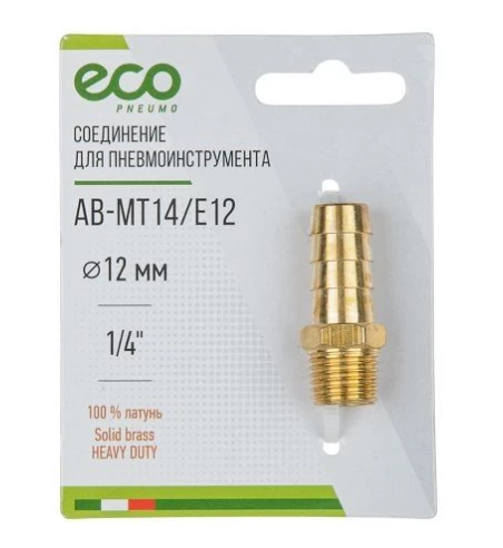 Соединение наружная резьба G1/4" х елочка 12 мм ECO AB-MT14/E12 - это штуцерное соединение с наружной резьбой.