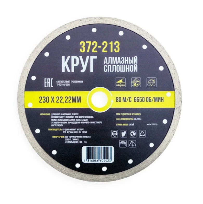 Диск алмазный сплошной для влажной резки - это специализированный инструмент, предназначенный для резки различных материалов с использованием воды для охлаждения и уменьшения пыли.
