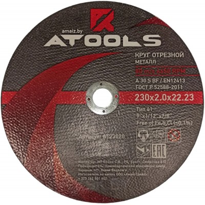 Диск отрезной ATOOLS (AT23020) предназначен для высокопроизводительной резки деталей и конструкций из различных марок стали и быстрорежущей стали.
