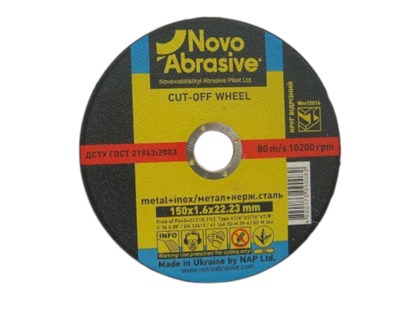 NOVOABRASIVE Круг отрезной по металлу 41 14А 150 1,6 22,23 (WM11516)