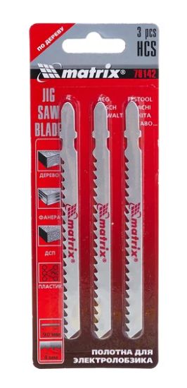 Полотна для электролобзика по дереву Matrix 78142 в количестве 3 шт., 90 х 4 мм, из стали HCS, с EU-хвостовиком, - элементы оснастки электрического пильного инструмента.