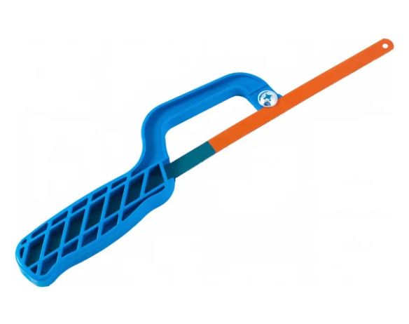 Ножовка по металлу, 250 мм, с пластмассовой рукояткой-держателем, рассчитана на бытовое использование.