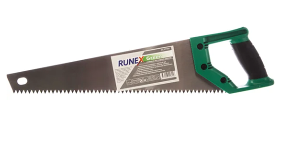Ножовка по сырой древесине Runex Green 400мм прямой крупный зуб 577441 подойдет для продольной и поперечной распиловки.