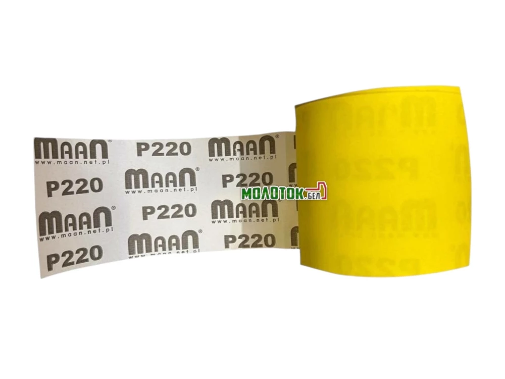 Бумага шлифовальная для сухой обработки в рулонах MAAN Р220 подходит для высокоскоростного шлифования поверхностных слоев краски и шпатлевки, древесины и металла.