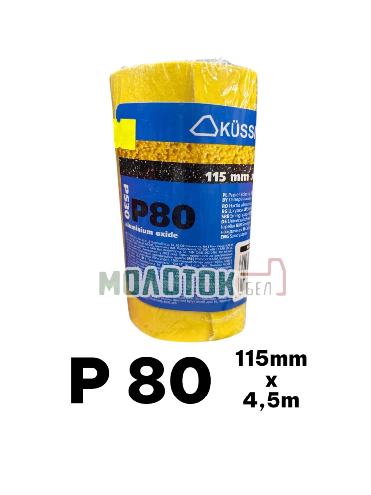 Бумага наждачная Р80 11 см × 4,5 м — абразивный материал средней зернистости на бумажной основе, предназначенный для ручной и машинной шлифовки древесины, металла, шпаклёвки, лакокрасочных покрытий и других твёрдых поверхностей.