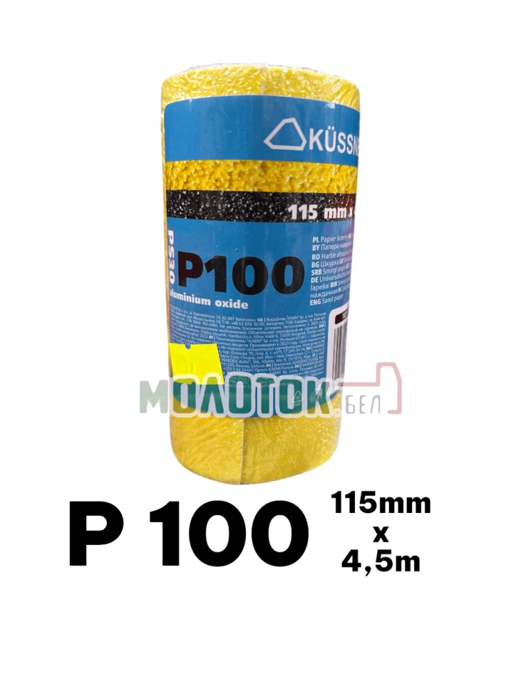 Бумага наждачная Р100 11 см × 4,5 м — абразивный материал средней зернистости на бумажной основе, предназначенный для ручной и машинной шлифовки древесины, металла, шпаклёвки, лакокрасочных покрытий и других твёрдых поверхностей.