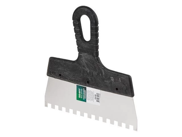 Зубчатый шпатель представляет собой вспомогательный инструмент для ручной укладки плитки.