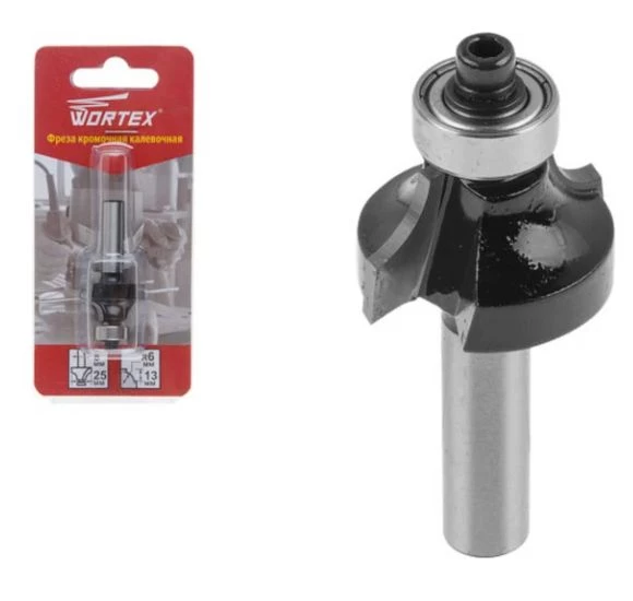 Фреза кромочная калевочная по дереву 25x13.2x53 мм WORTEX MCCA251318 используется для получения прямой, дугообразной или волнистой фигурной кромки - в зависимости от используемой части фрезы можно смягчить ребро заготовки, скруглить его, сделать кромку с фальцем и губкой или получить полустержневой выступ.