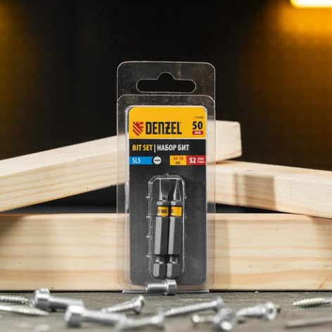 Набор бит SL 5,0 х 50 мм Denzel 11658 включает 2 сменные насадки из стали S2 для шуруповертов и отверток-адаптеров с присоединительным шестигранником 1/4 дюйма.