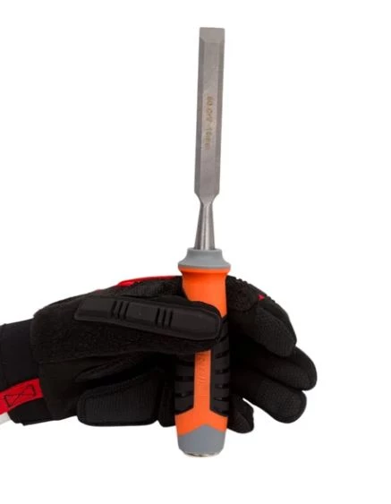 Металлический тыльник безопасен в работе. Стамеска оснащена скошенными краями - это исключает застревание инструмента.