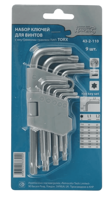 Набор имбусовых ключей Remocolor TORX предназначен для работы с крепежом типа TORX (T-профиль).