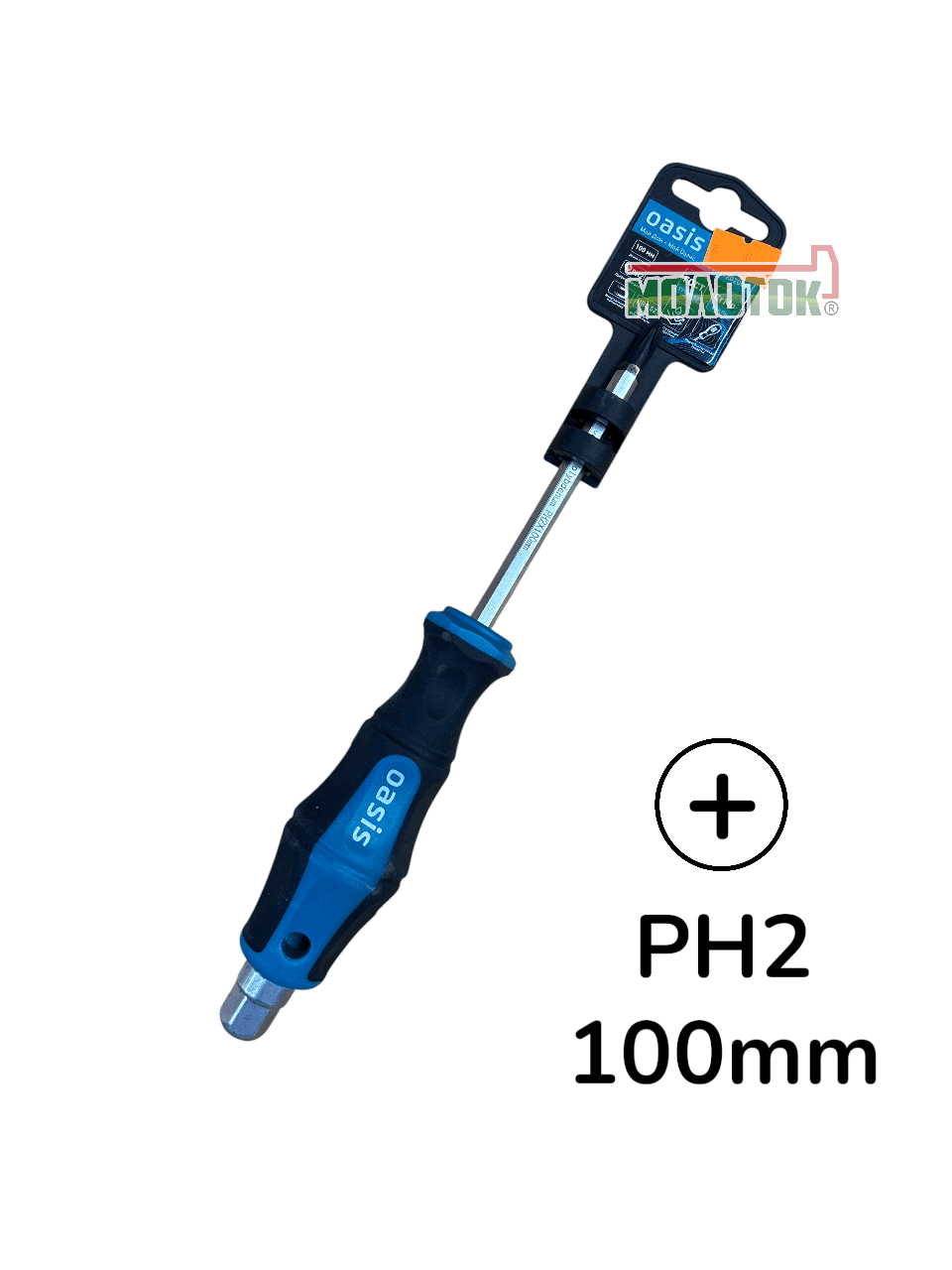 Ударная отвёртка Oasis PH2×100 мм (CR-MO) — профессиональный инструмент для монтажа и демонтажа крепёжных элементов, в том числе заржавевших или сильно затянутых резьбовых соединений.