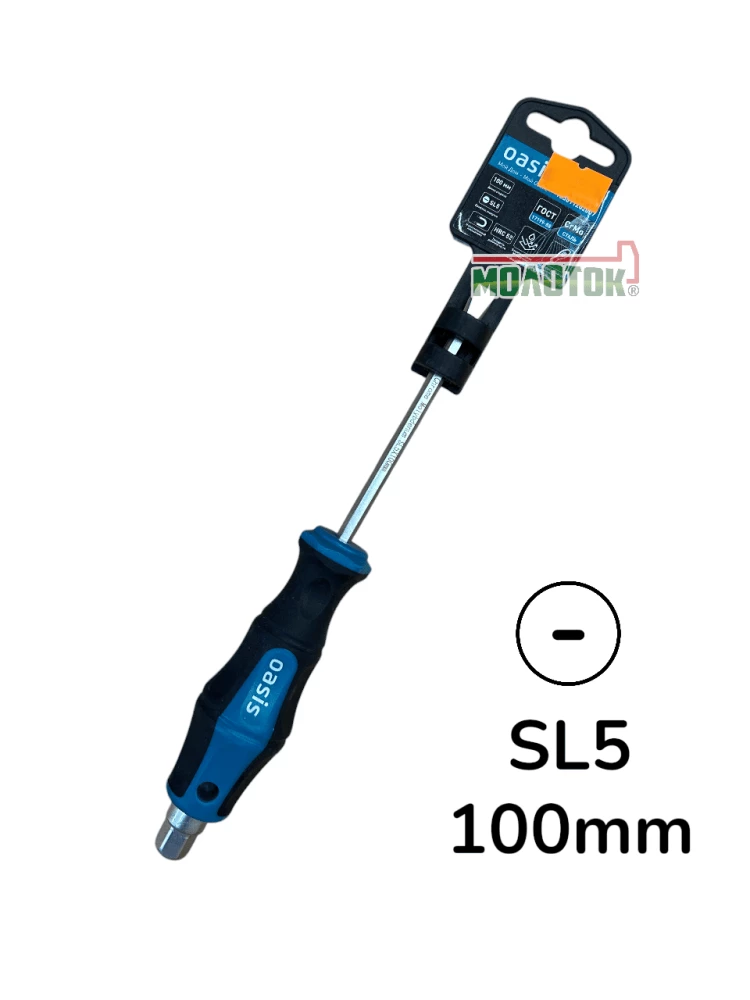 Ударная отвёртка Oasis SL5×100 мм (CR-MO) — профессиональный инструмент для монтажа и демонтажа крепёжных элементов, в том числе заржавевших или сильно затянутых резьбовых соединений.