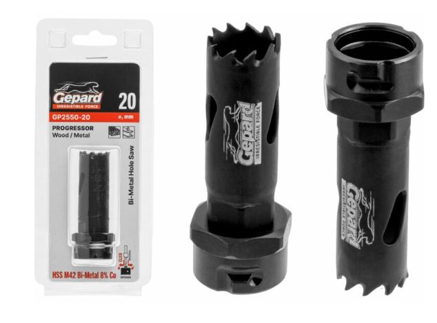Коронка биметаллическая 20 мм GEPARD Progressor (GP2550-20) применяется для сетевых и аккумуляторных дрелей-шуруповертов, легких перфораторов и со стационарными станками в безударном режиме.