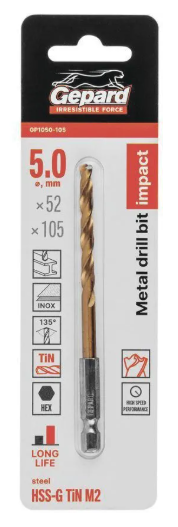 Артикул:GP1050-105Диаметр:5,0Тип:сверлоНазначение:по металлу