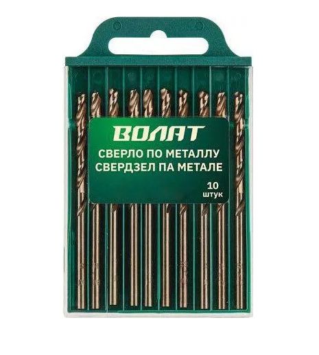 Сверло по металлу 3,2х36х65 мм 10 штук ВОЛАТ (85032-065) из быстрорежущей стали HSS, шлифованное.