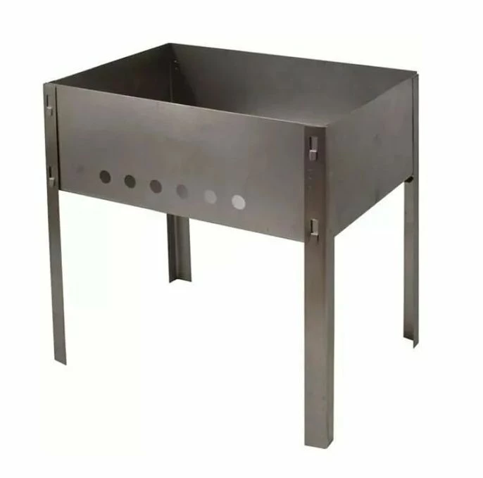 Металлический мангал предназначен для приготовления шашлыков, рыбы, овощей на шампурах или решетках-гриль с использованием углей.
