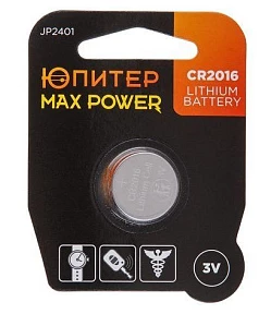 Батарейка ЮПИТЕР Max Power CR2016 3 V литиевая (JP2401) применяется в бытовых электроприборах и отличается высокой продолжительностью работы.