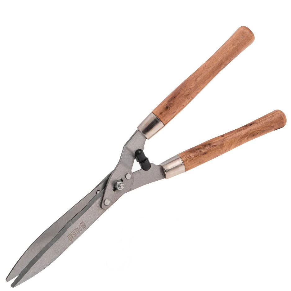 Кусторез Palisad 608375 длиной 520 мм, с волнистыми лезвиями и деревянными рукоятками, легко справляется с обрезанием молодых веток диаметром до 10 мм.