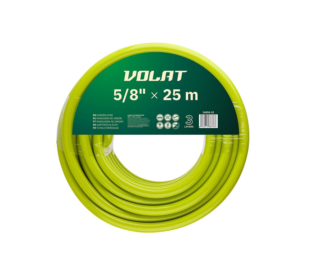 Шланг поливочный ВОЛАТ 5/8" 25 м (54058-25) предназначен для орошения почвы на садовых и парковых участках.