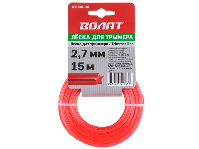 Леска для триммера диаметром 2,7 мм используется на электрических триммерах и мотокосах с объемом двигателя до 22 см3.