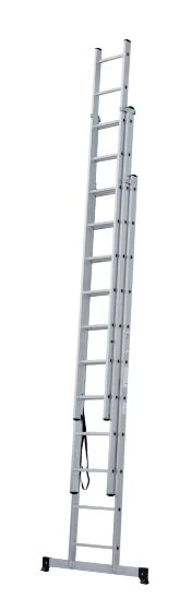Лестница трехсекционная - это универсальная лестница, которая может использоваться в разных режимах: как приставная, раздвижная, двухсторонняя стремянка, стремянка с выдвижной секцией и лестничный марш.