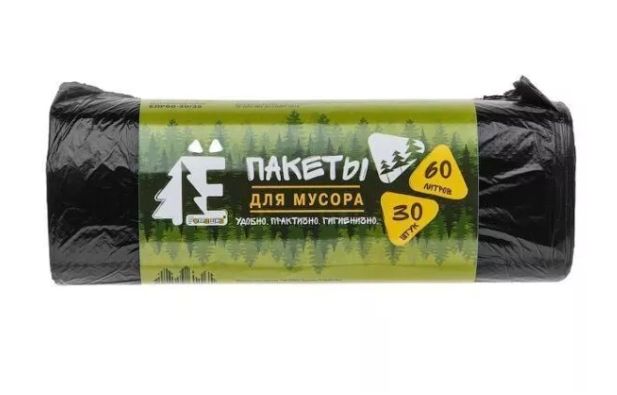 Пакеты для мусора РОМАШКА Е-Ромашка 60 л 30 штук черные (ЕЛР60-30/35) выполнены из полиэтилена низкого давления.