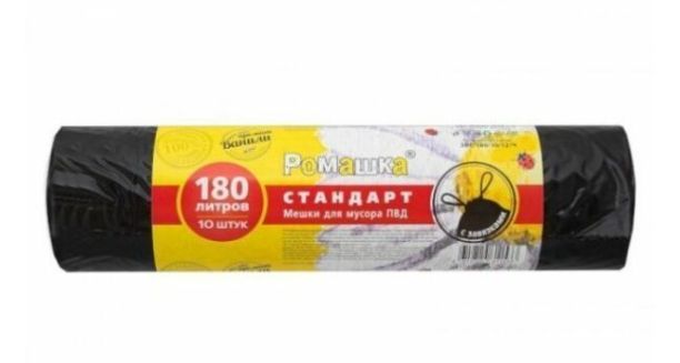 Пакеты для мусора с завязками РОМАШКА Стандарт 180 л 10 штук черные (ЗВС-180/10/12/Ч) представлены в классической линейке из полиэтилена высокого давления, созданной для широкого круга покупателей.